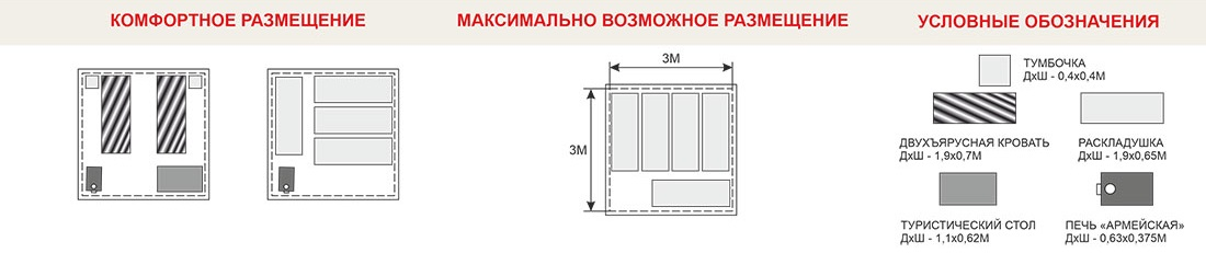 - Вместимость палатки до 4 человек на двухъярусных кроватях.